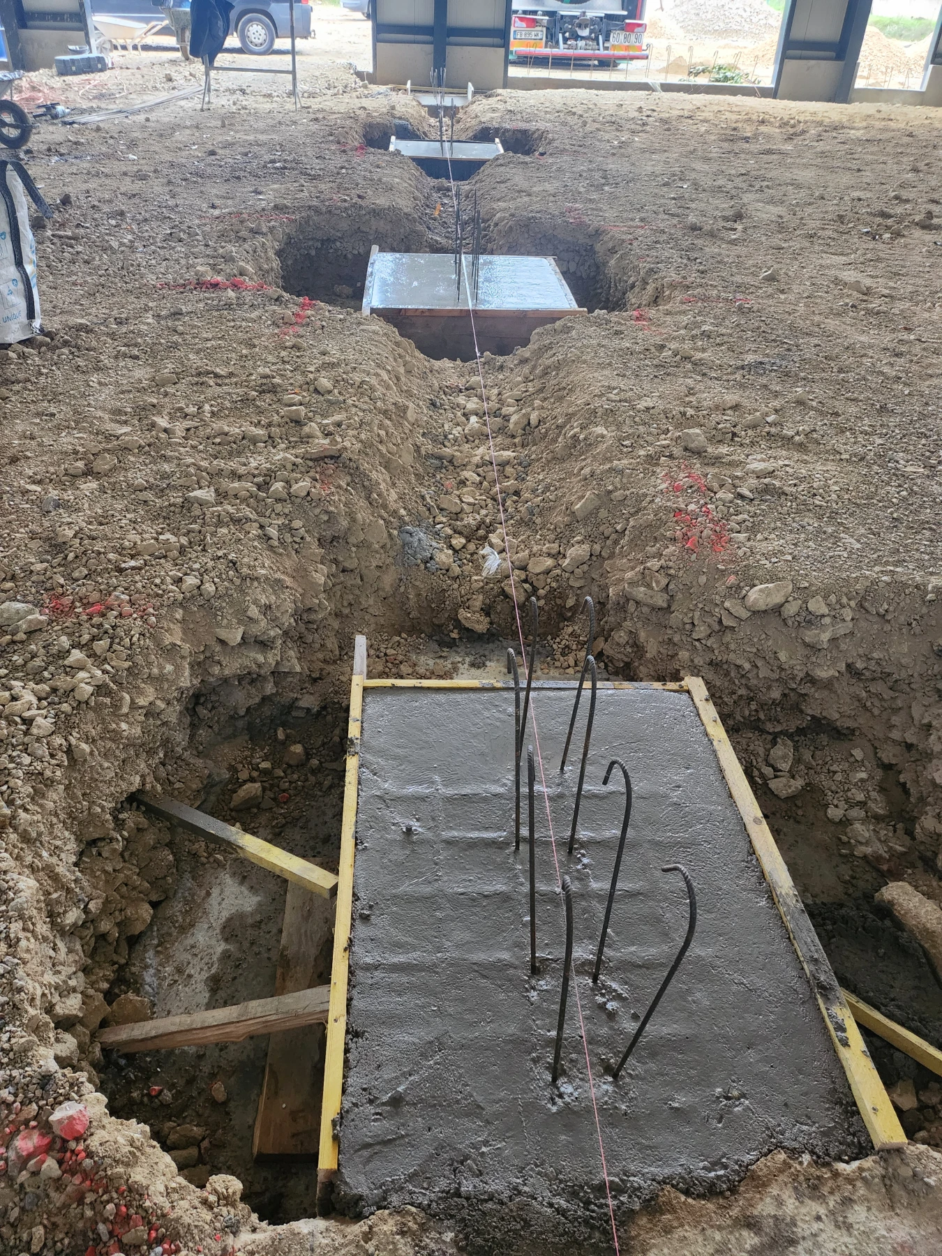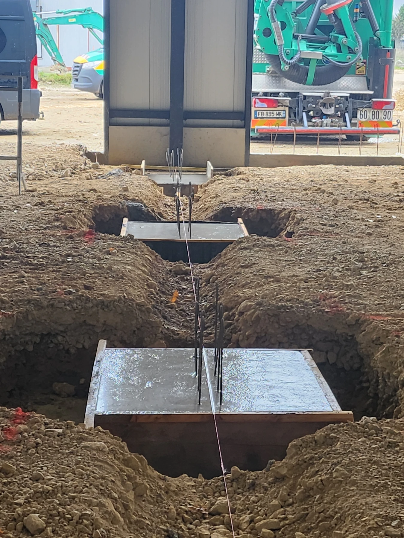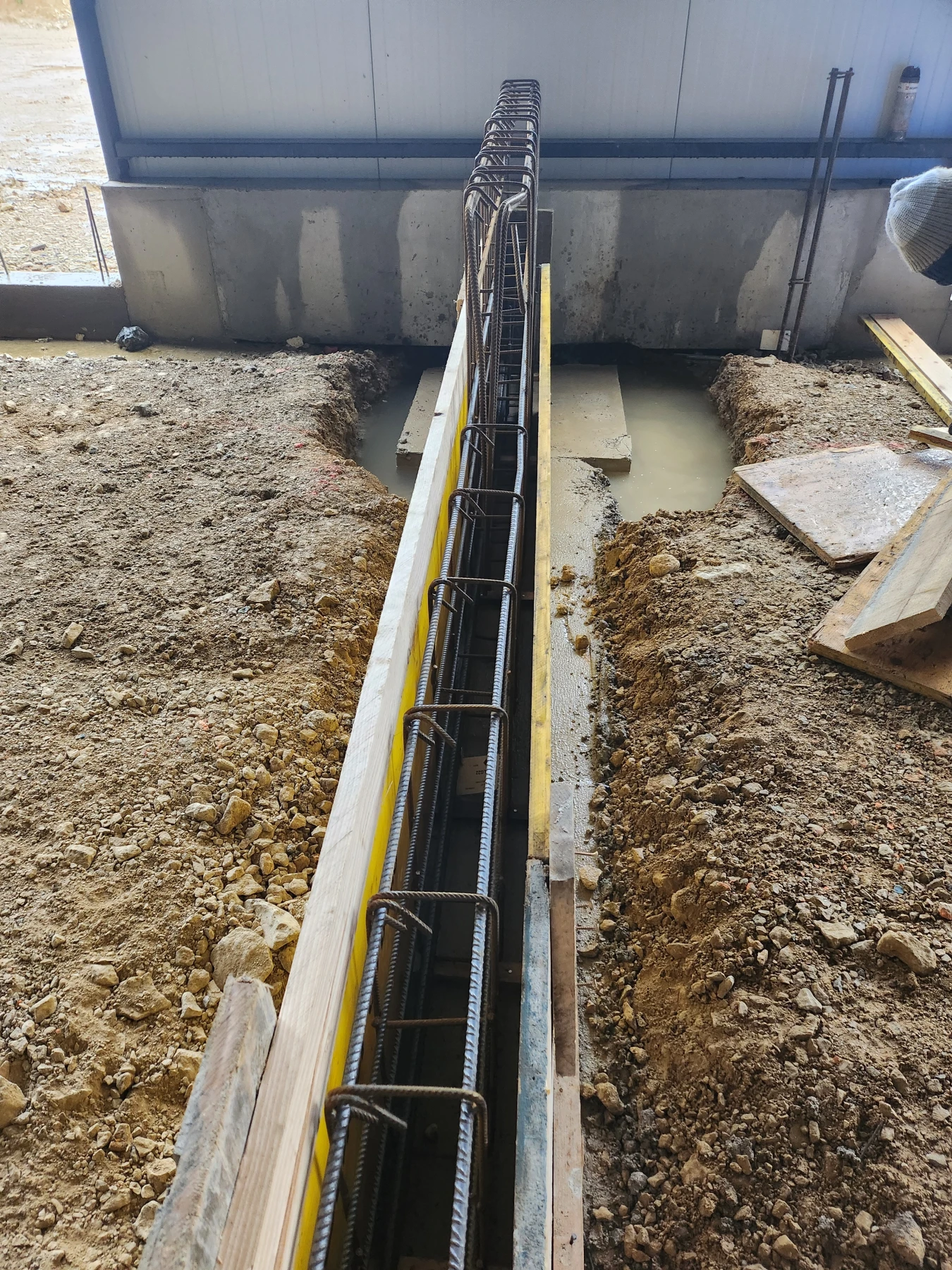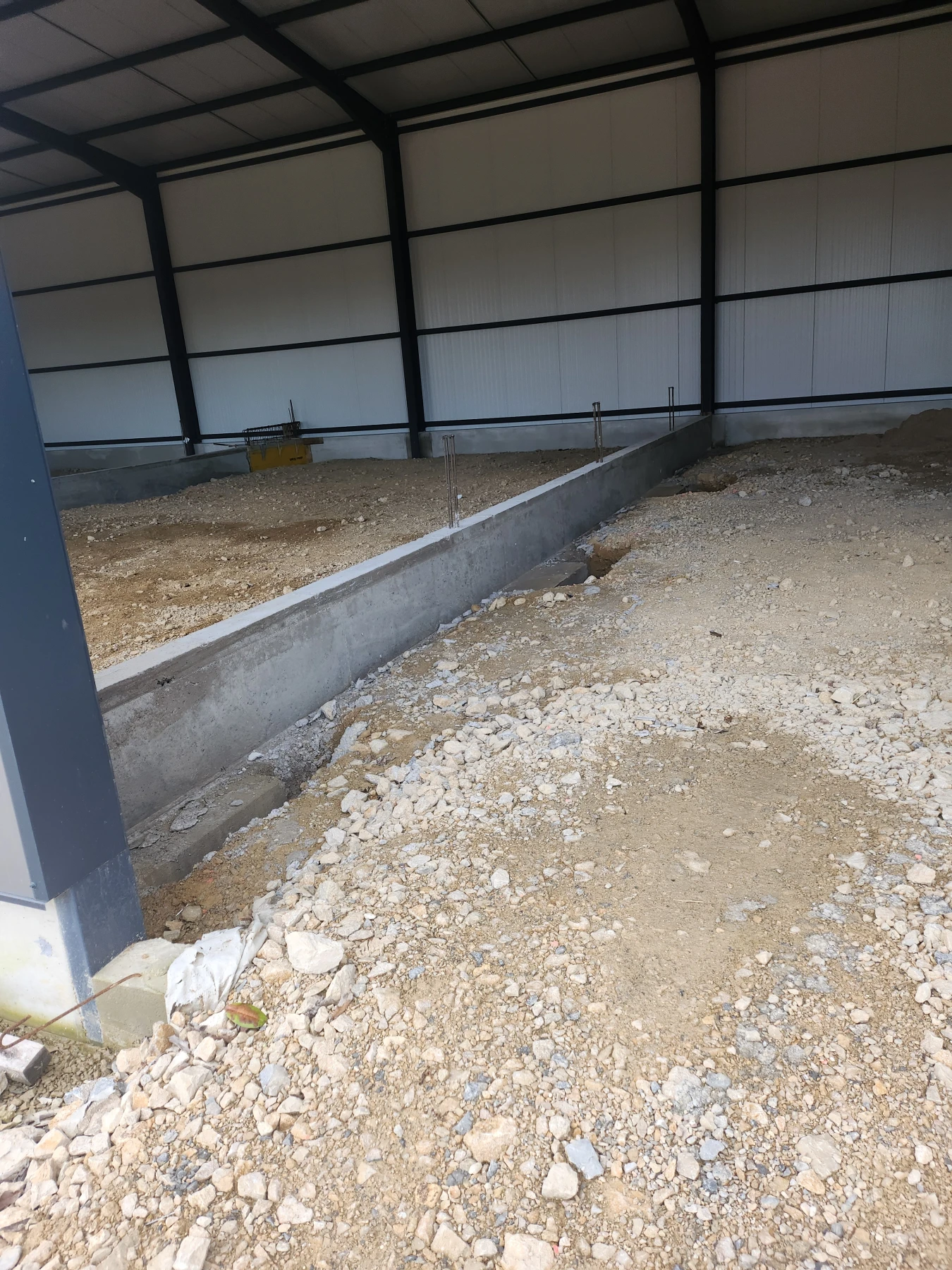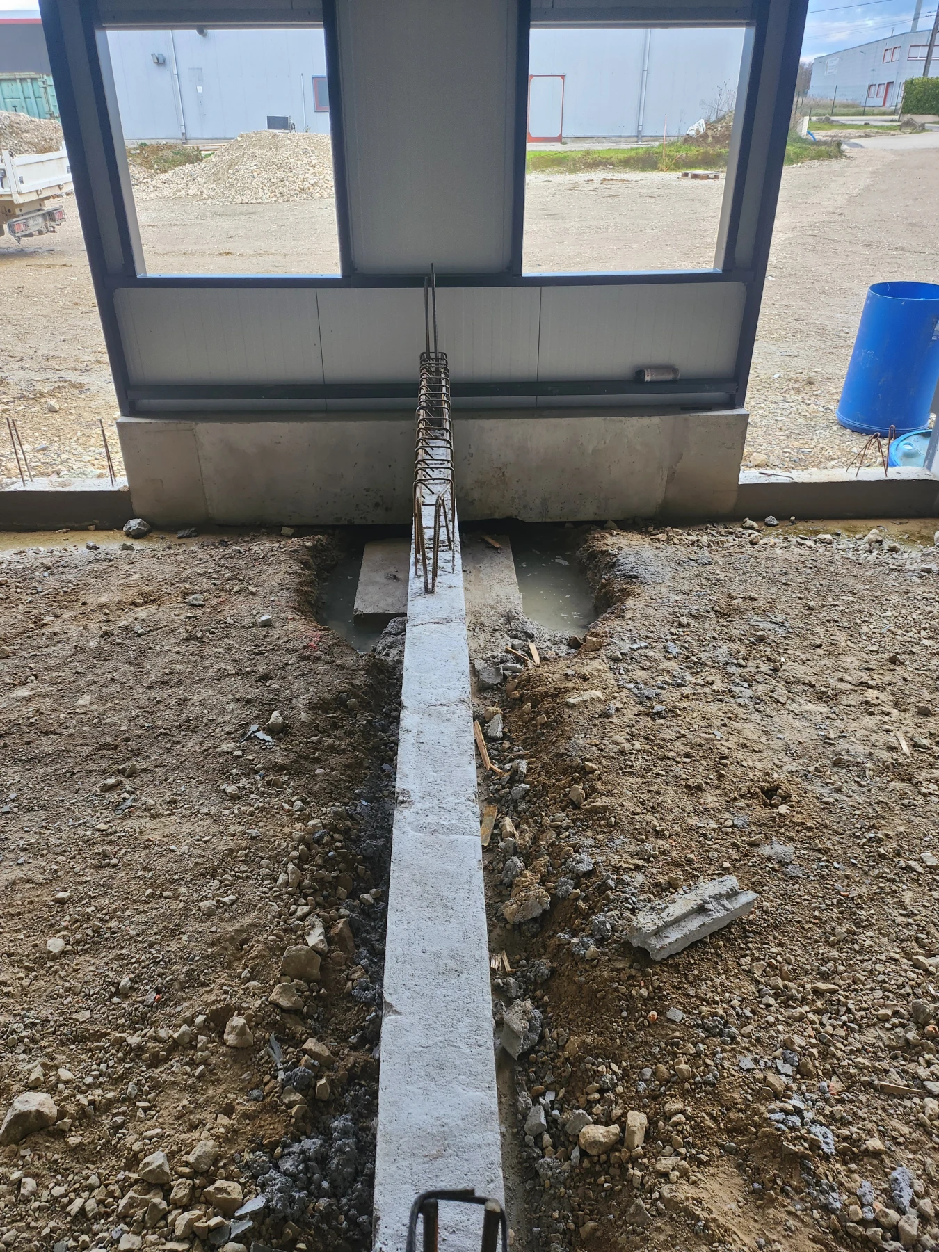 Afin d’assurer la stabilité du bâtiment, SKML Rénovations a réalisé une longrine en périphérie comprenant le coffrage, le ferraillage et le béton sur une longueur de 80 mètres linéaires et 0,6 mètre de hauteur. Cette étape est essentielle pour obtenir une fondation durable et résistante aux charges industrielles.