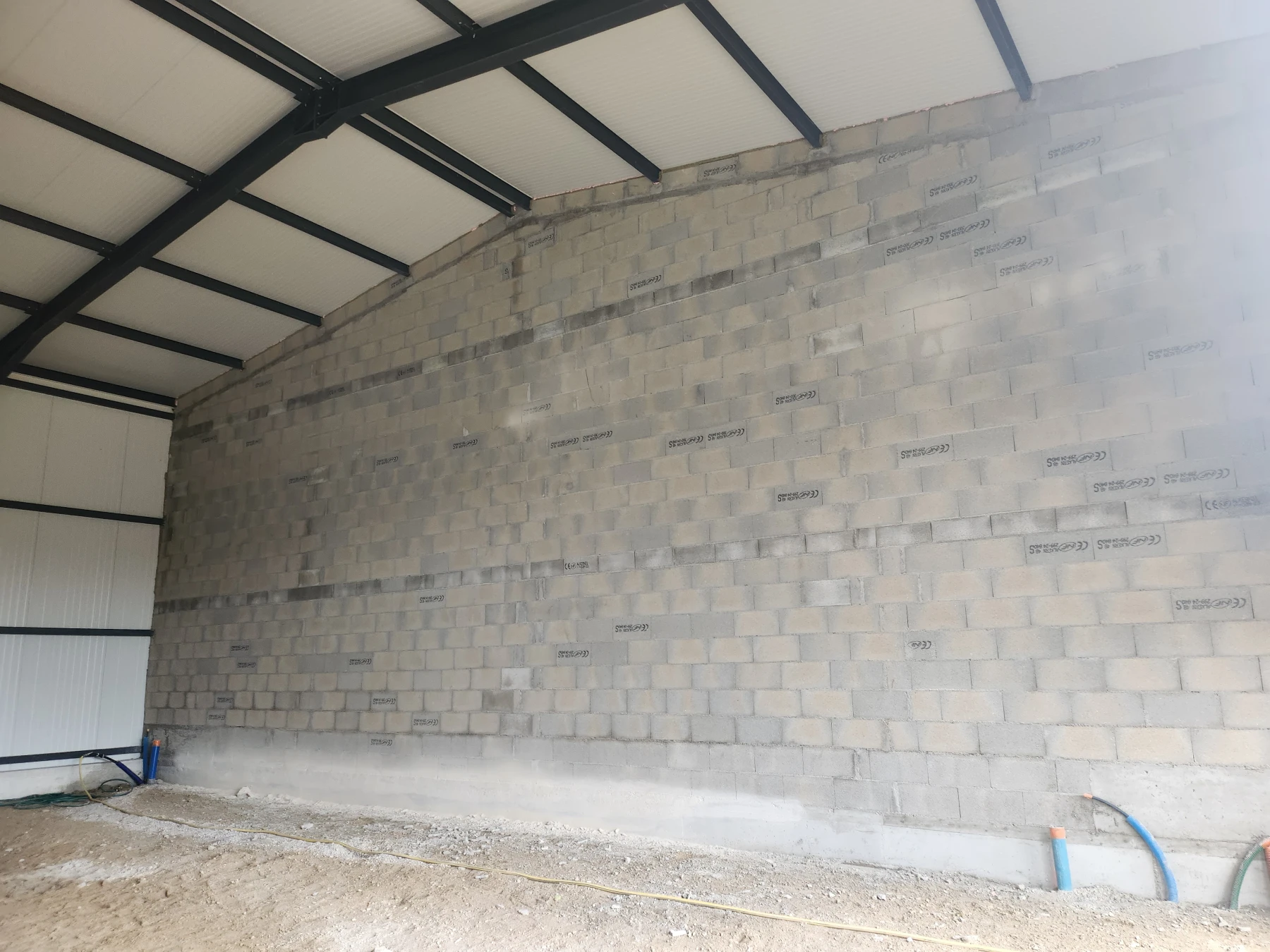 Pour la division intérieure du bâtiment, SKML Rénovations a construit des murs en agglos afin de créer des box séparatifs. Ces ouvrages respectent les normes coupe-feu, avec l’intégration de laine de roche et de mousse expansive pour assurer une parfaite isolation thermique et acoustique.
